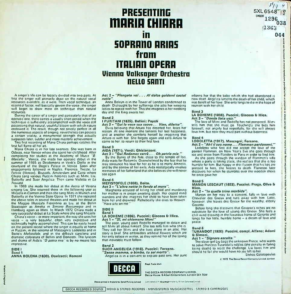 商品コード:1363-044[DECCA] M.キアーラ(s)/ イタリアオペラ・アリア集/アンナ・ボレーナ, 清教徒 他