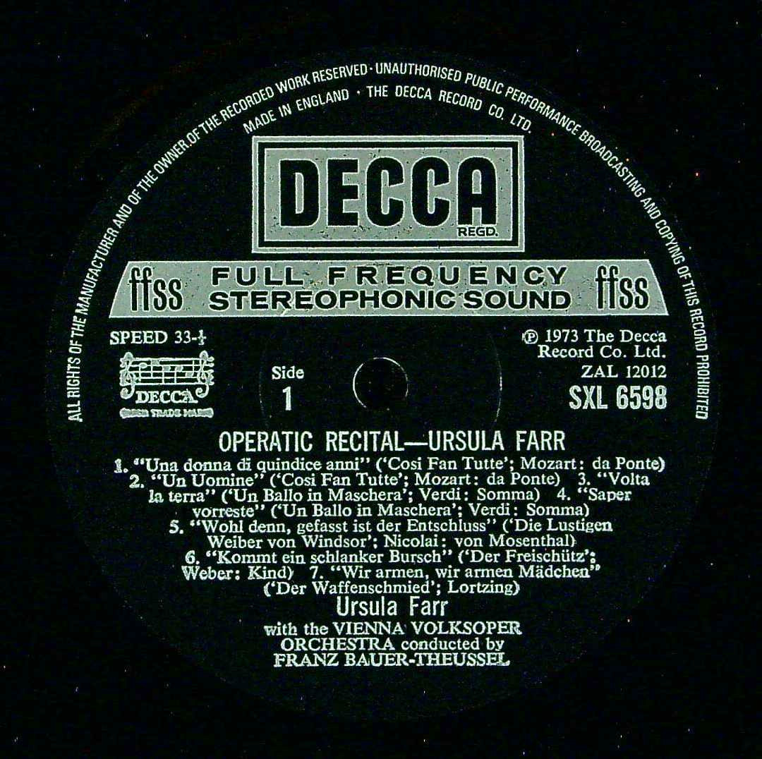 商品詳細:当社初入荷の希少な番号。ソプラノ歌手、ウルズラ・ファルに関する情報は全くなく、ジャケットにも一切記載がない。曲の内容から見てドイツ語圏生まれの歌手ではないかと想像できる。1972年にオペラ・アリア集-1:SXL 6537(未入荷)と1973年頃にオペラ・アリア集-2:SXL 6598(当アイテム)の2枚が発売されただけと思われる。今回Vol.2が初入荷となり、時間を掛けて調べたが、全く情報はなかった。声質は意外なほど軽く、澄んだ美しい声で、歌曲、宗教曲にも十分対応できそうなリリック・ソプラノ。2枚のLPを録音して突然消えてしまったソプラノ歌手。クルト・ゲーベル 指揮ベルリン・スタジオ管弦楽団によるデリンガー:歌劇「ドン・セザール」に参加しており、ベルリン・ドイツ・オーパーに籍を置く歌手かもしれない。声質も良く実力がある歌手ながら、短期間に2枚だけ残して録音市場から消えた珍しい歌手である。実演ではその後も活動したと思われるが、録音がされないのは何らかの事情があったのだろう。ソプラノ歌手好きにはかなりの珍品である。声も良く、曲数も多い珍しいオペラ・アリア集!