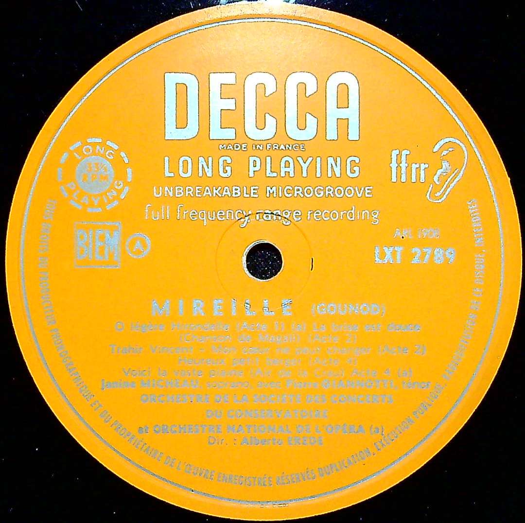 商品コード:1363-034[DECCA] J.ミショー(s)/ 「レシタル-2」オペラ・アリア集/ビゼー:真珠採り~3曲, グノー:ミレイユ~5曲