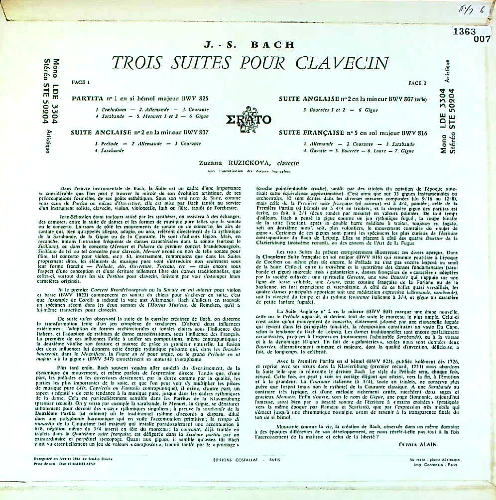 商品コード:1363-007[ERATO] Z.ルージチコヴァー(cemb) / バッハ:パルティータ1番, イギリス組曲2番, フランス組曲5番