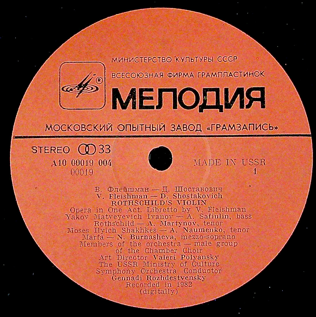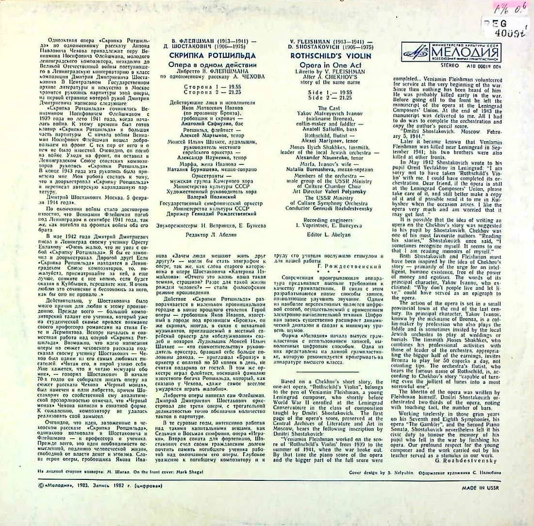 商品コード:REG-4009t[露MELODIYA] G.ロジェストヴェンスキー/ フレーイシュマン(ショスタコーヴィチによる補筆完成版):歌劇「ロスチャイルドのヴァイオリン」(全曲)