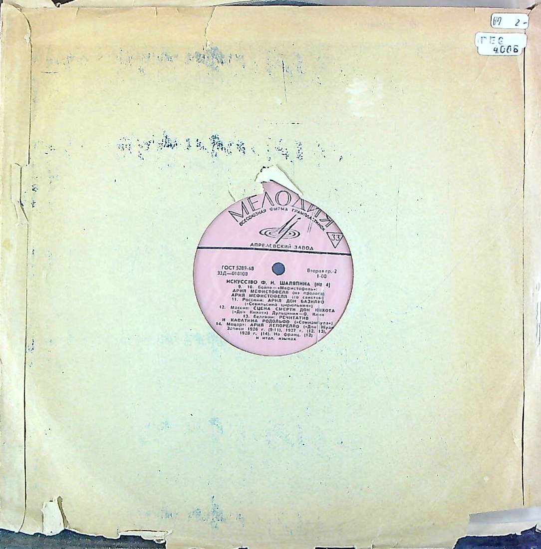 商品コード:REG-4006[露MELODIYA] F.シャリアピン(bs) / 「シャリアピンの芸術~歌曲集~Vol.4」