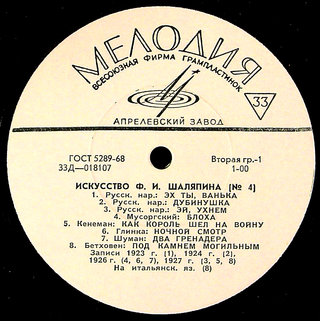 作品名:「シャリアピンの芸術~歌曲集~Vol.4」ロシア民謡:ああ、ヴァンカ, 仕事の歌(ドゥビヌシカ), ムソルグスキー:蚤, グリンカ:真夜中の閲兵, シューマン:二人の擲弾兵, ベートーヴェン:この暗い墓の中に, モーツァルト:「ドン・ジョヴァンニ」~アリア 他(全14曲)