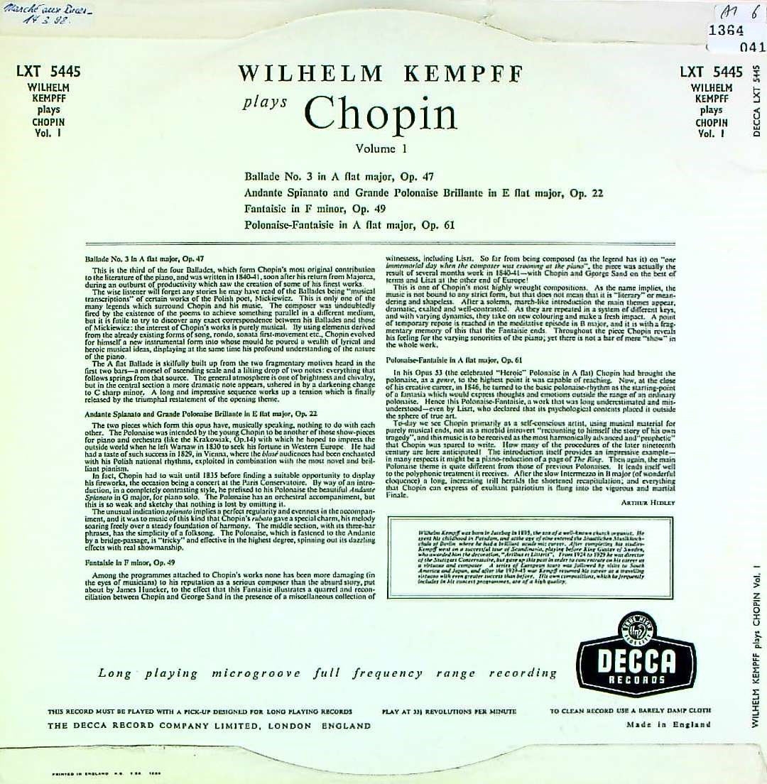 商品コード:1364-041[DECCA] W.ケンプ(pf) / ショパン:Pf作品集-1/バラード第3番, 華麗なる大ポロネーズ 他