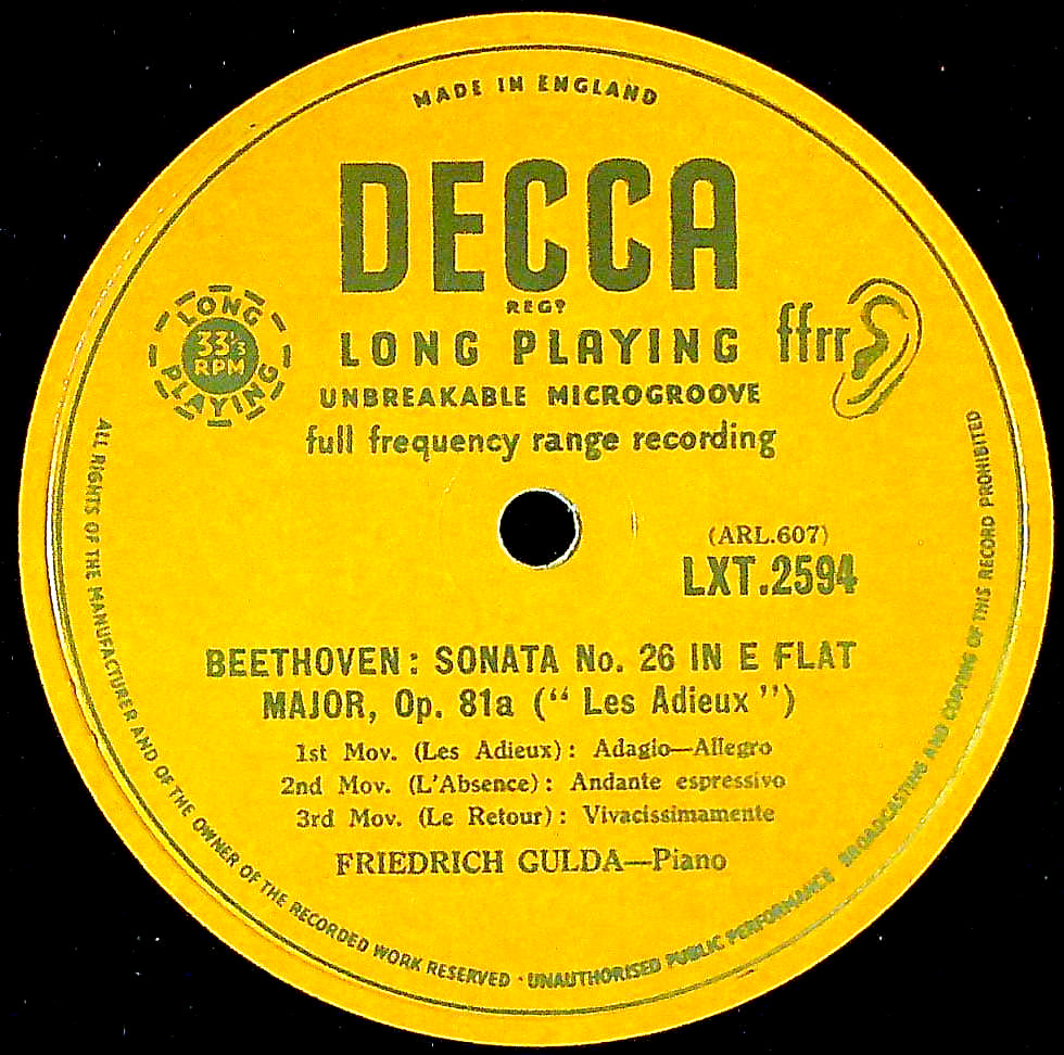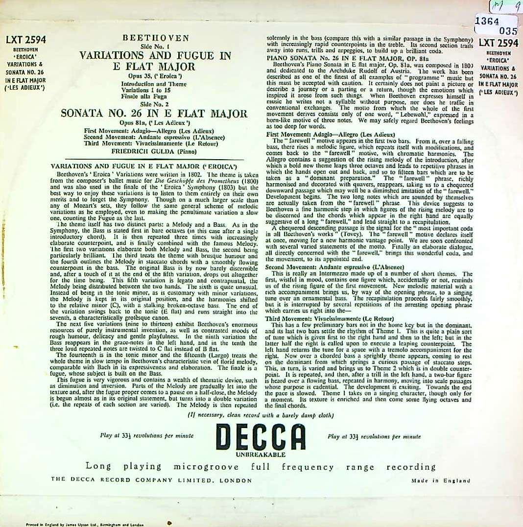 商品コード:1364-035p[DECCA] F.グルダ(pf) / ベートーヴェン:Pfソナタ集-2/ ピアノのための変奏曲「エロイカ」, 26番「告別」