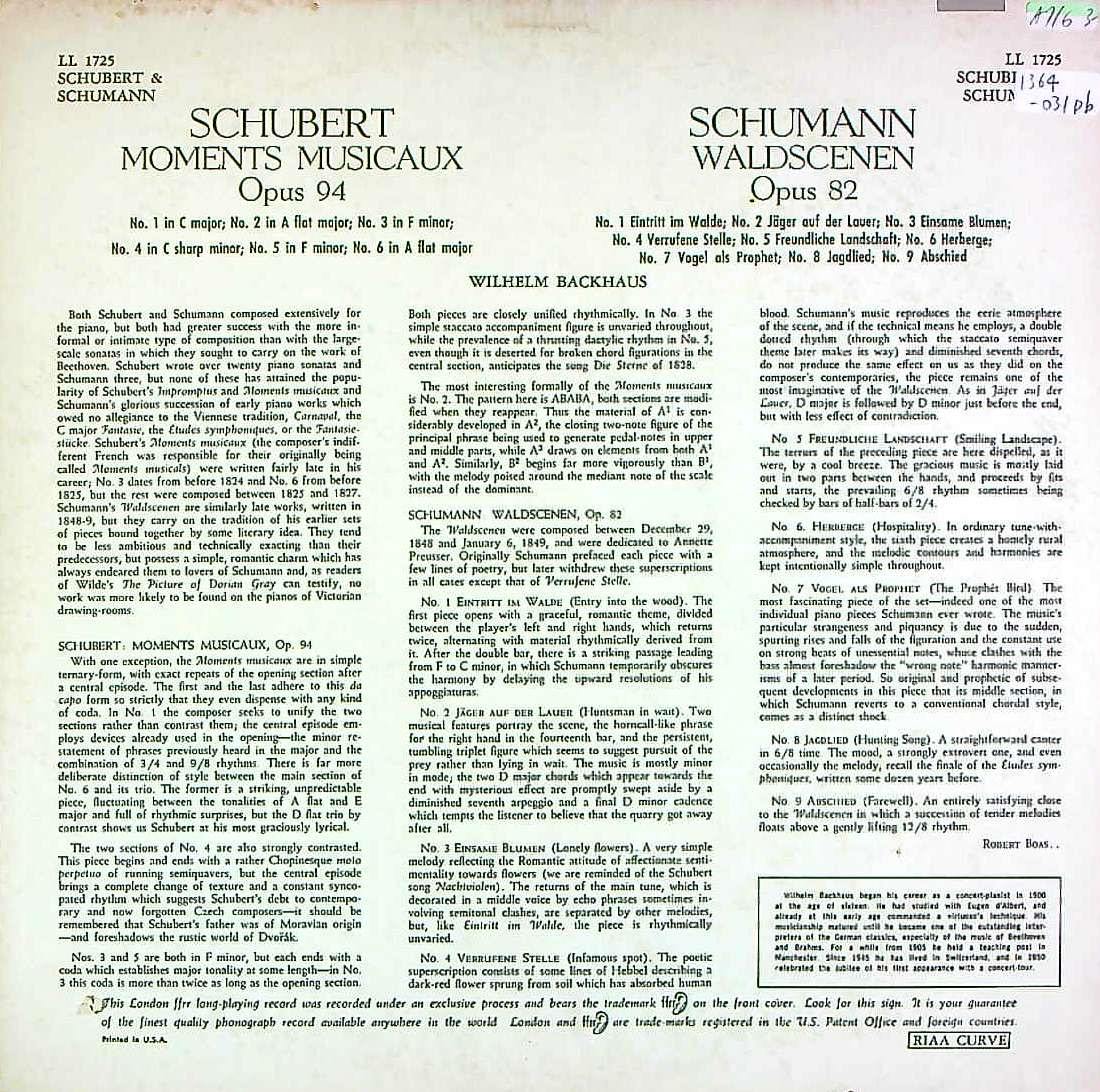 商品コード:1364-031pb[LONDON] W.バックハウス(pf) / シューベルト:楽興の時(全6曲), シューマン:森の情景(全9曲)