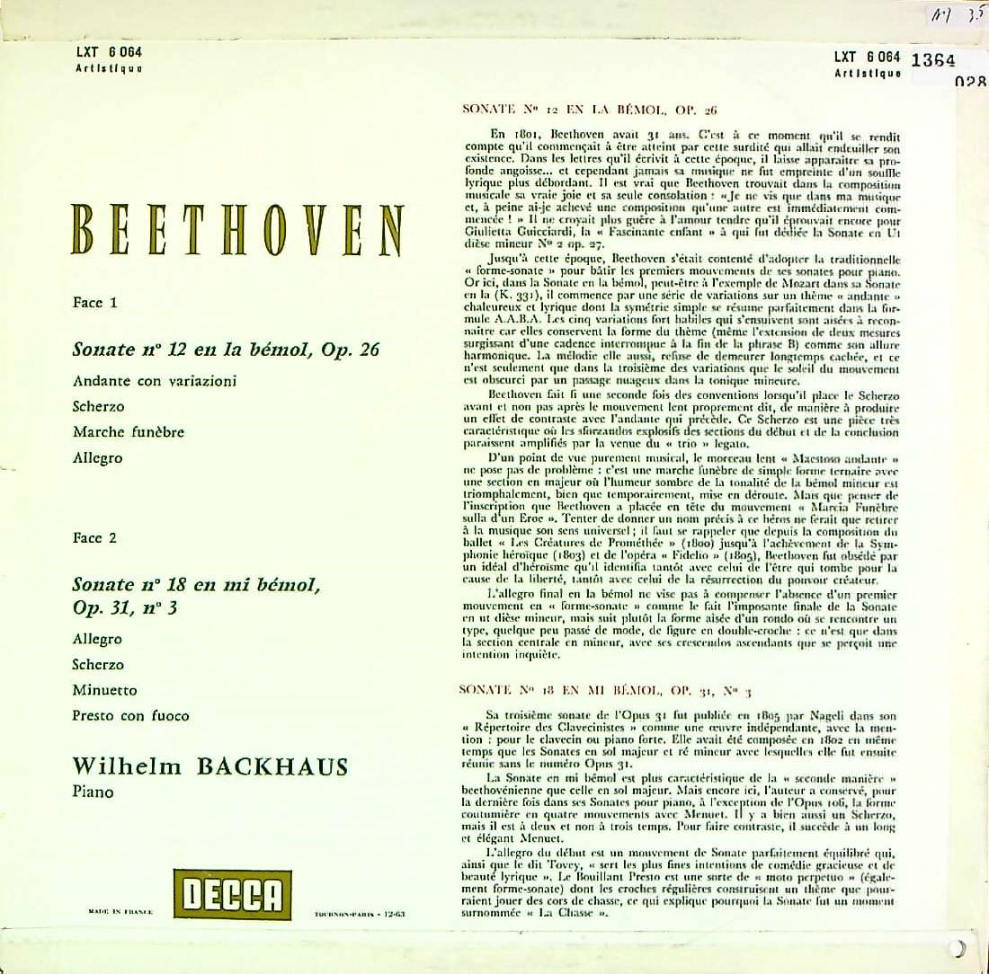 商品コード:1364-028[DECCA] W.バックハウス(pf) / ベートーヴェン:新Pfソナタ全集vol.5/ 12番, 18番