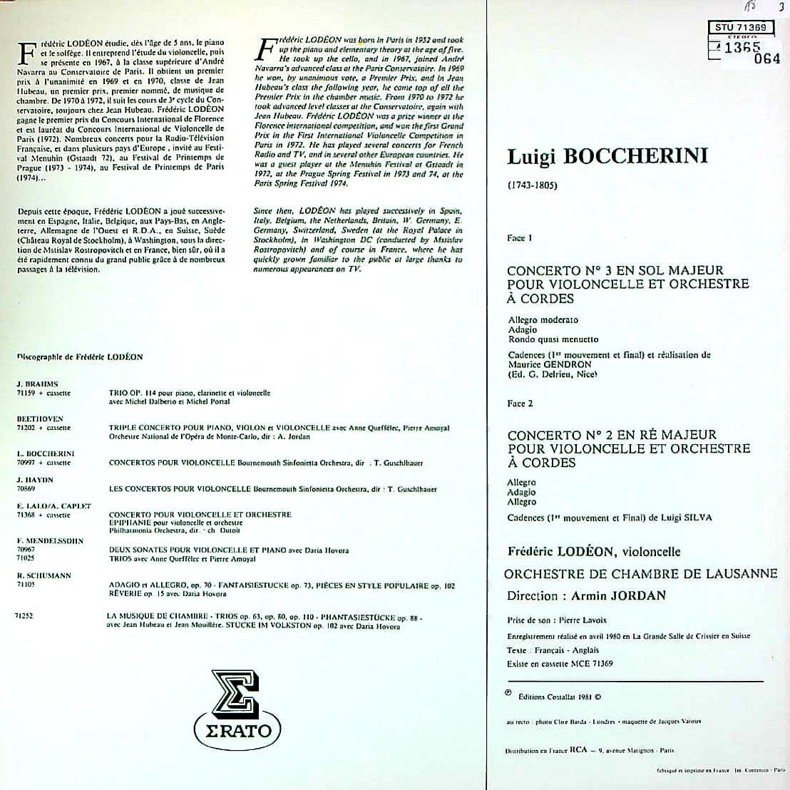 商品コード:1365-064[ERATO] F.ロデオン(vc)/ ボッケリーニ:Vc協奏曲集/Vc協奏曲第3番G 480, Vc協奏曲第2番G 479