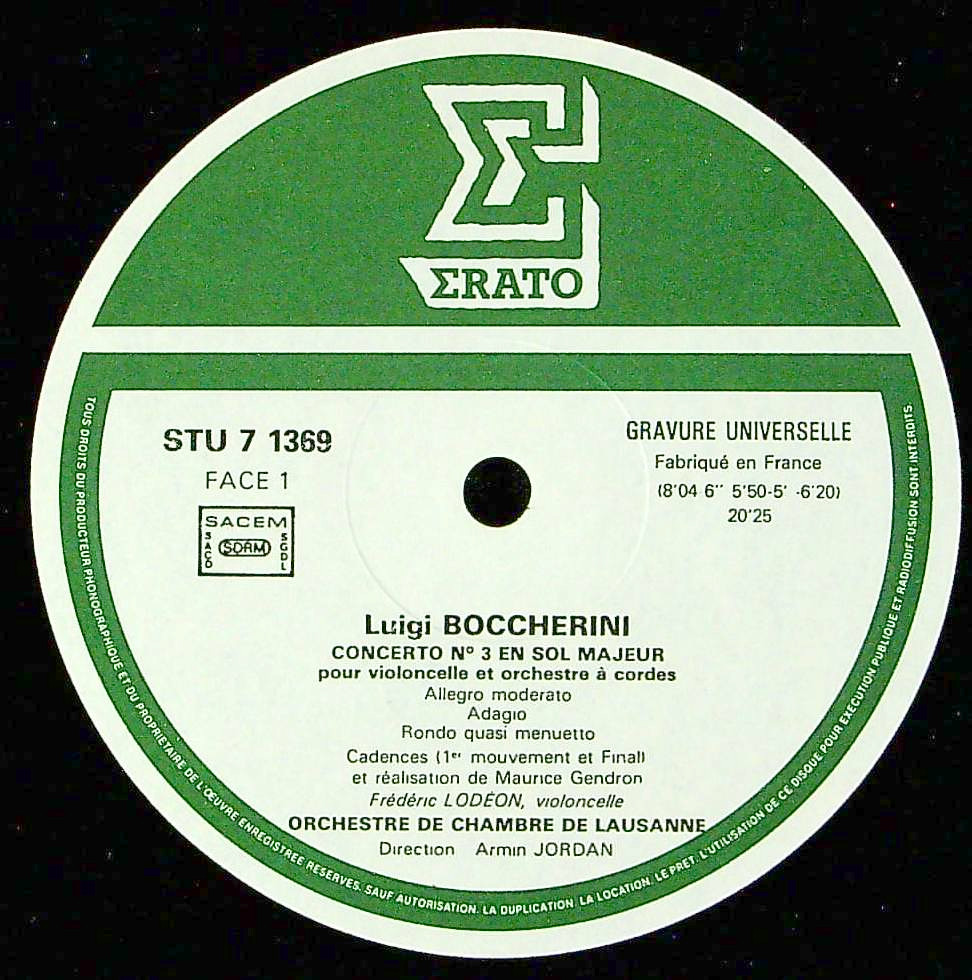 商品詳細:ハイドン、モーツァルトと同時代に生き、ハイドン夫人と呼ばれる事もあるボッケリーニはチェロ奏者としても活躍し、チェロ協奏曲や室内楽を多く残した。モーツァルトやハイドンのようにソナタ形式を主体とせず、複数の旋律によって構成されるのが特徴。そしてそれまで通奏低音としか扱われていなかったチェロを他の楽器と対等に扱い、多くの室内楽を残した。演奏は室内楽で素晴らしい録音を残したフレデリック・ロデオン(1952-)、パリ生まれ。アルベール・テタールにチェロの手ほどきを受けた後、パリ音楽院でアンドレ・ナヴァラにチェロ、ジャン・ユボーに室内楽を学ぶ。1969年にチェロ科の、1970年に室内楽のそれぞれプルミエ・プリを得てパリ音楽院を卒業した。1972年にはモーリス・マレシャル国際チェロ・コンクールで優勝し、1977年にはムスティスラフ・ロストロポーヴィチ・チェロ・コンクールでも優勝を飾った。1999年からはラジオ・フランスのコンサート番組のプロデューサー兼プレゼンターを任されるようになった。ラジオパーソナリティとしても有名らしい。演奏・音質とも1970年代フランスらしい第一級のLP!ボッケリーニの協奏曲はT.グシュルバウアー指揮ボーンマス・シンフォニエッタo.と1977年頃英国ボーンマスで9/10番を録音していた。これはそのシリーズの追加録音で1980年にスイス・クリシエ・グランサルでの録音。ロデオンはここでも温和で温かみのある柔らかい音で癒しの音楽を与えれくれる。こちらは9/10番より後に出た盤だがプレスが非常に少ないレア盤!