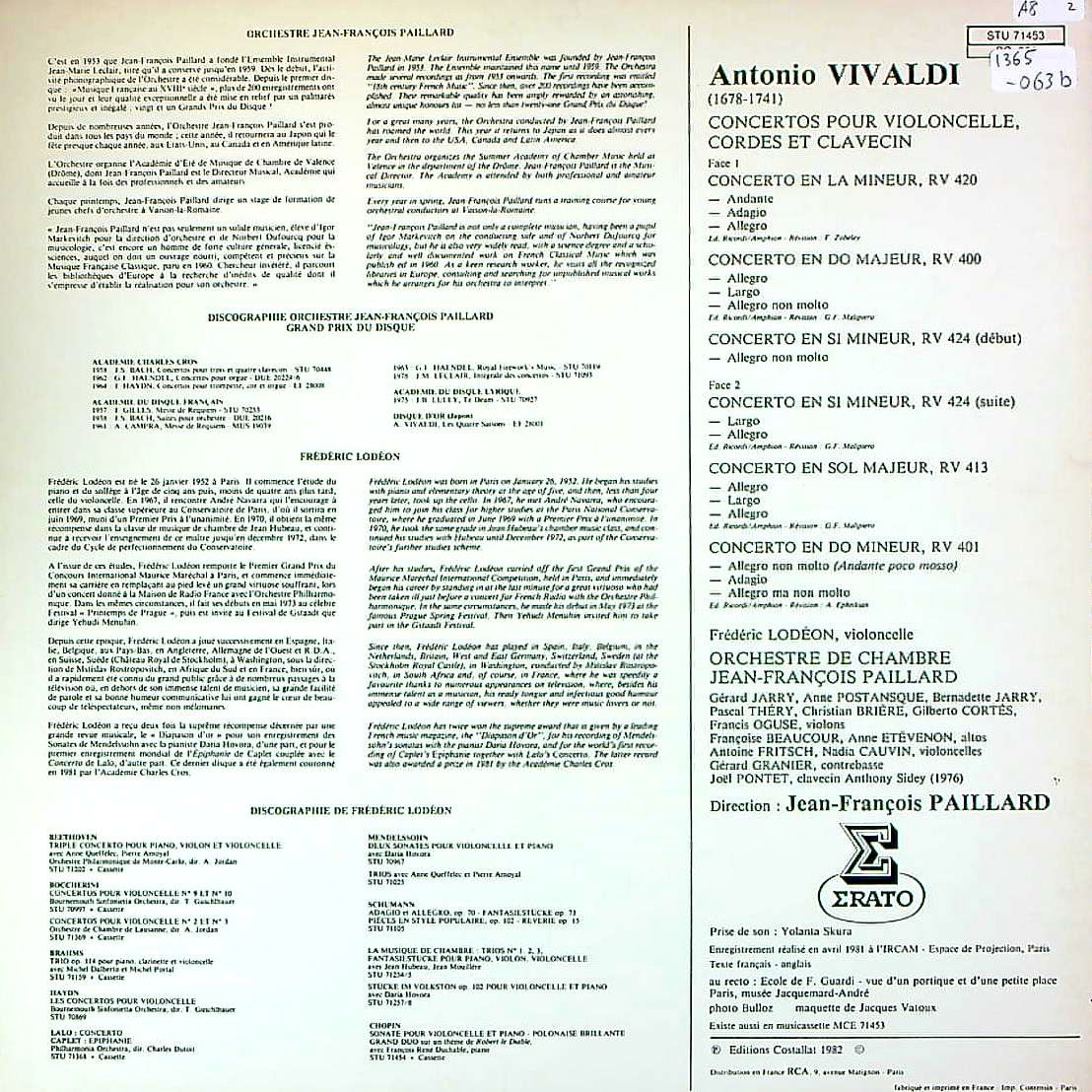 商品コード:1365-063b[ERATO] F.ロデオン(vc)/ ヴィヴァルディ:Vc協奏曲集(5曲)/RV.420, RV.400, RV.424, Rv.413, Rv.401