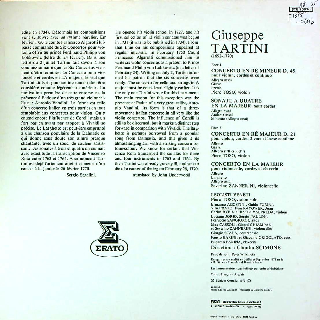 商品コード:1365-060b[ERATO] P.トーゾ(vn) S.ザンネリーニ(vc)/ タルティーニ:協奏曲集