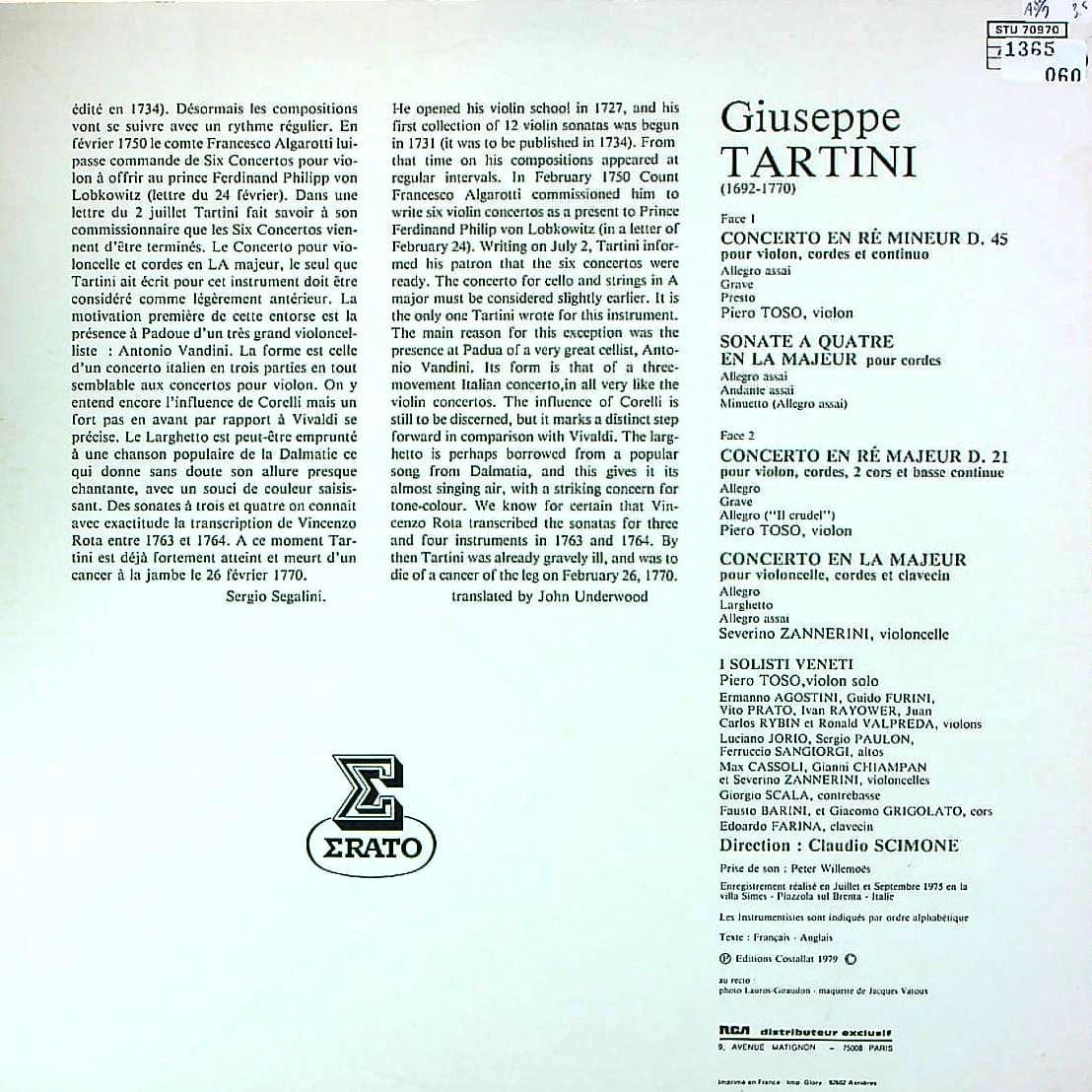 商品コード:1365-060[ERATO] P.トーゾ(vn) S.ザンネリーニ(vc)/ タルティーニ:協奏曲集