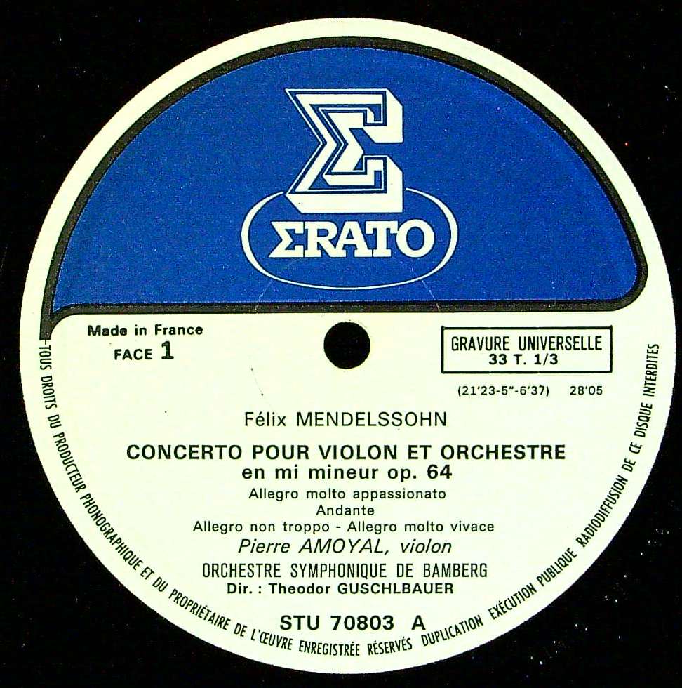 商品詳細:A面にP.アモイヤル(vn)T.グシュルバウアー指揮バンベルクso.によるメンデルスゾーン:Vn協奏曲他。B面がT.グシュルバウアー指揮バンベルクso.によるメンデルスゾーンの演奏会用序曲が2曲という構成。ピエール・アモイヤル( Pierre Amoyal)は1949年パリ生まれのユダヤ系フランス人のヴァイオリニスト。12歳でパリ音楽院を一等賞(プルミエ・プリ)を獲得して卒業(当時、史上最年少)。その後ロサンゼルスに渡り、5年間ヤッシャ・ハイフェッツの下で学ぶ。ハイフェッツの下で徹底的に基礎技術から磨きをかけた。ハイフェッツが弟子の中でその才能と技量に全幅の信頼を置いた唯一の弟子であり、室内楽のコンサートやレコーディングで共演も行った。アモイヤルが独り立ちしてハイフェッツの下を離れる時、ハイフェッツはギュスターヴ・ヴィヨームの銘器を自ら購入してアモイヤルに贈った。ハイフェッツ譲りのコシの強い美音と、速いパッセージを端正に演奏する正確さに加え、フランコ・ベルギー派の流れを受け継ぐ幅広いヴィブラートが挙げられる。独特の音の伸びや音色の多彩さを利用したテンポ・ルバートも個性的なものである。ERATOが1970年、新世代の看板奏者にした期待の星だった。張りのある美音と効果的に用いるヴィブラートが彼の魅力。ロマン派の叙情性を聴く事が出来る作品。フォーレなどフランス音楽やベルクの協奏曲などで高い評価を得ているが、当盤に聴くメンデルスゾーンも、細目の澄んだ美しい透明度の高い音色で曲の良さを引き出している。Vn奏者が劣化、減少してゆく中で一人、気を吐く、1970年代における最高レベルのヴァイオリン奏者!