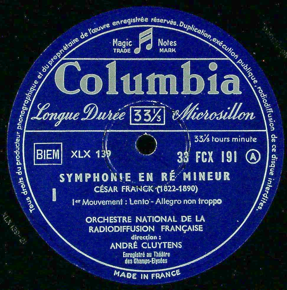 トピックス:1953年3月9-10日パリ・シャンゼリゼ劇場(Théatre Des Champs-Elysées)でのモノラル録音, 録音技師:Walter Ruhlmann, プロデューサー:René Challan, フランスでは1953年Les Industries Musicales Et Electriques Pathé Marconi によりコピーライト登録・同年FCX 191(紺/銀音符内溝Disque Incassable付レーベル・フラット盤・旧デザイン・ツヤペラジャケット入り)で初リリース→1955年頃・紺/銀音符内溝レーベル・フラット盤・旧デザインコートジャケット入り→1957年頃同一番号・紺/銀音符内溝レーベル・フラット盤・棒付厚手ボード粗目ジャケット入り(当アイテム)→1959年頃同一番号・紺/銀音符段付レーベル・グルーヴガード厚手盤・棒付厚手ボード粗目ジャケット入り→1971年頃2C 063-***--と変遷する, 初年度分の折返紙ペラジャケ入りフラット重量盤で盤質7はなかなか無い, 英国COLUMBIA:33CX 1064(中溝フラット), 伊COLUMBIA:QIMX 7010, 状態の良いフラット盤は少ない, ジャケットは折返ツヤペラ→折返コートペラ→棒付ボード粗目(当ジャケ)→棒付薄手ボード薄と変遷する