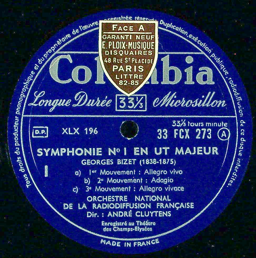 商品コード:1365-037pc[COLUMBIA] A.クリュイタンス/ ビゼー:交響曲1番, 序曲「祖国」