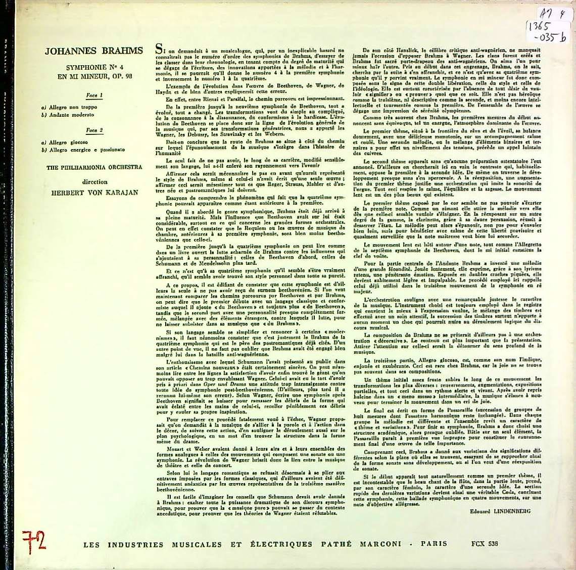 商品コード:1365-035b[COLUMBIA] H.v.カラヤン/ ブラームス:交響曲4番