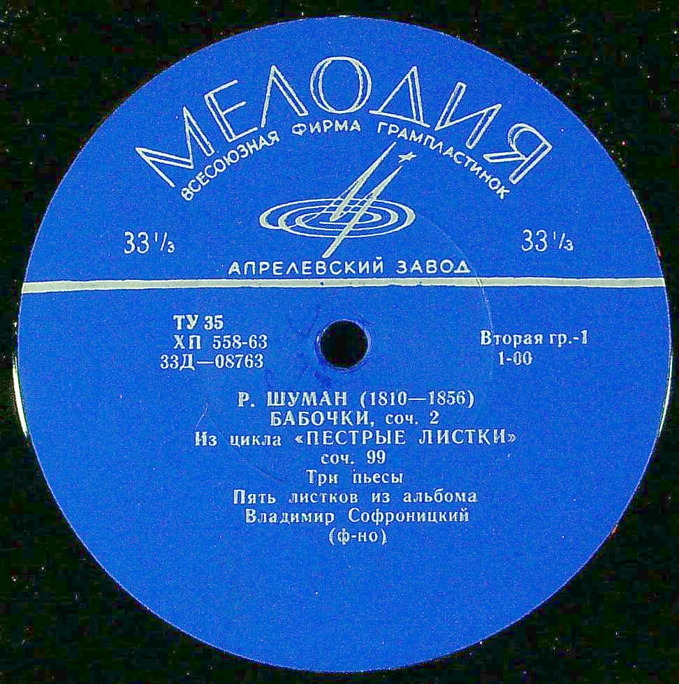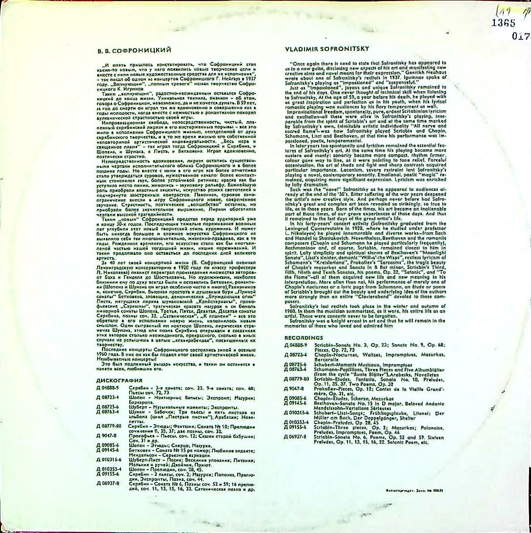 商品コード:1365-017n[MELODIYA] V.ソフロニツキー(pf) / シューマン:アラベスク, ノヴェレッテ(2曲), 雑記帳~3つの小品, 5つのアルバムの綴り