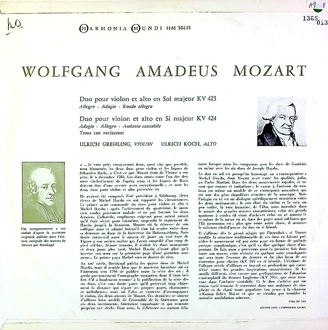 商品コード:1365-013[HM] U.グレーリング(vn) U.コッホ(va) / モーツァルト:Vn・Va二重奏曲1, 2番