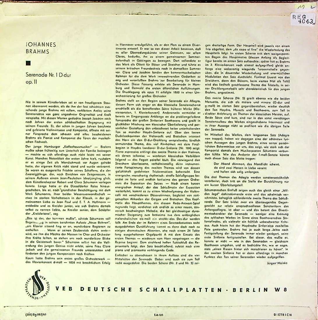 商品コード:REG-4043n[東独ETERNA] H.ボンガルツ/ ブラームス:セレナーデ1番