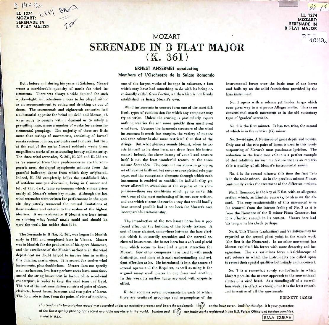 商品コード:REG-4029n[米LONDON] E.アンセルメ/ モーツァルト:セレナーデ10番K.361 (K.370a)「グラン・パルティータ(大組曲)」