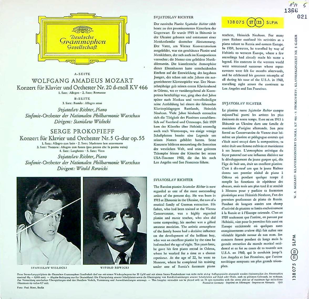商品コード:1366-021n[DGG] S.リヒテル(pf) / モーツァルト:Pf協奏曲20番K.466 プロコフィエフ:Pf協奏曲5番Op.55