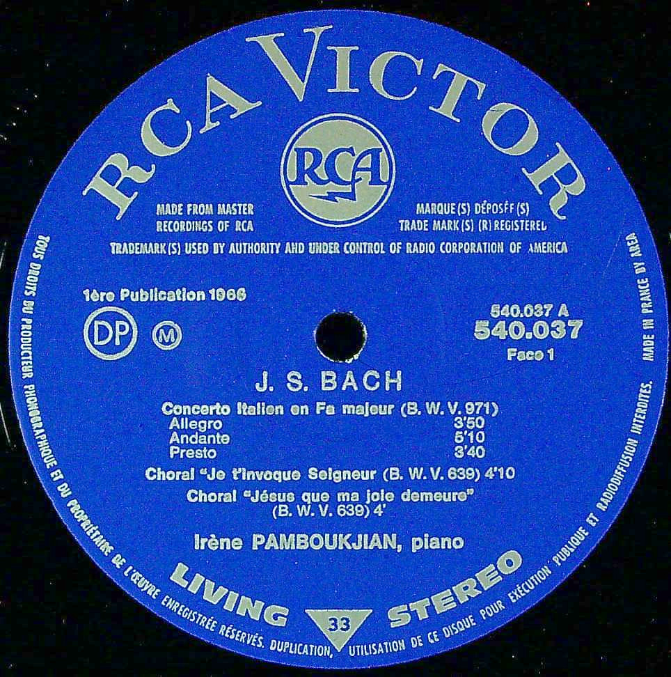 商品コード:1366-013b[RCA] I.パンボクジャン(pf) / バッハ:イタリア協奏曲BWV.971, コラールBWV.639 他, ヘンデル