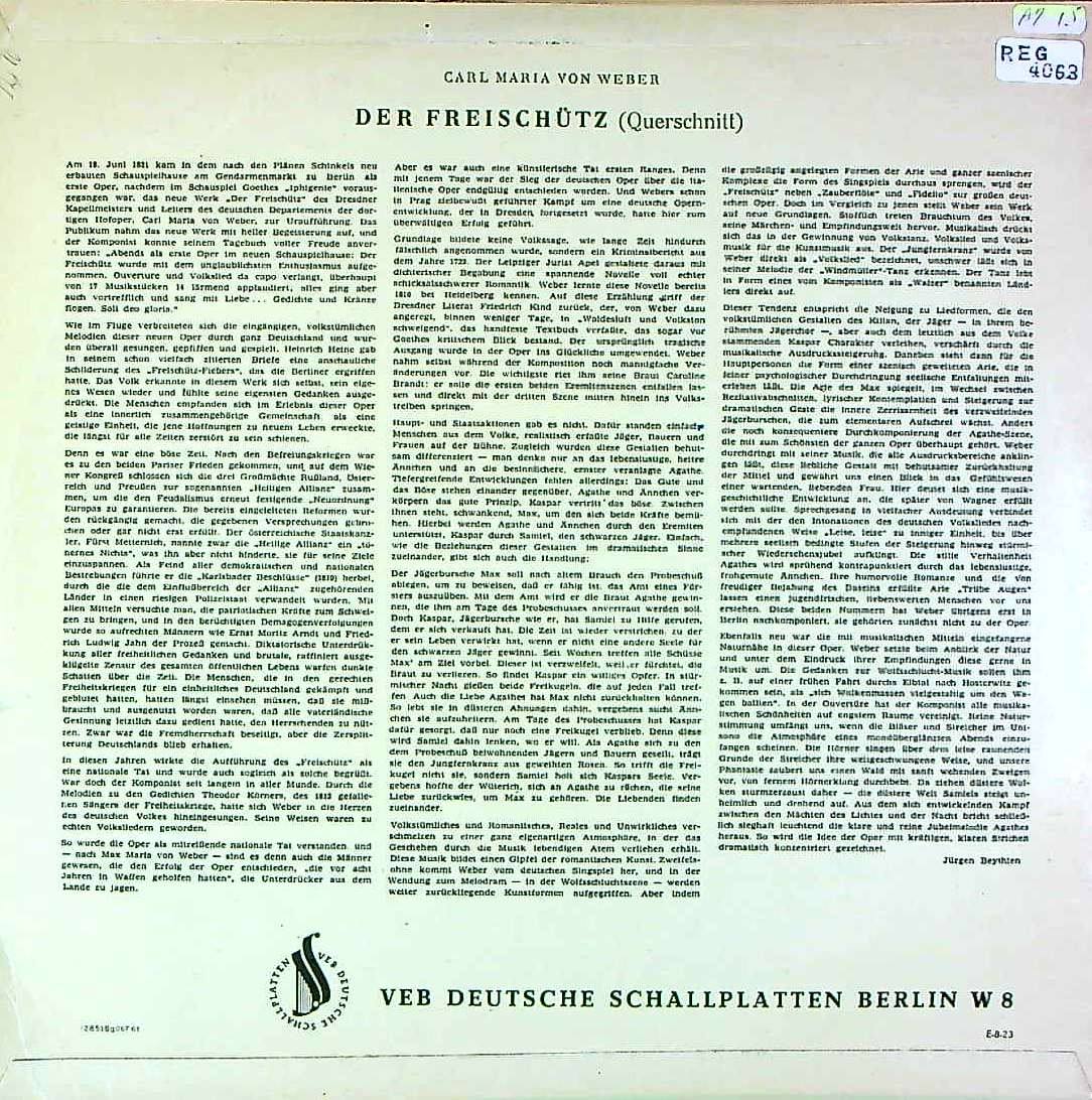 商品コード:REG-4063n[東独ETERNA] J.カイルベルト/ ウェーバー:歌劇「魔弾の射手」(ハイライト)