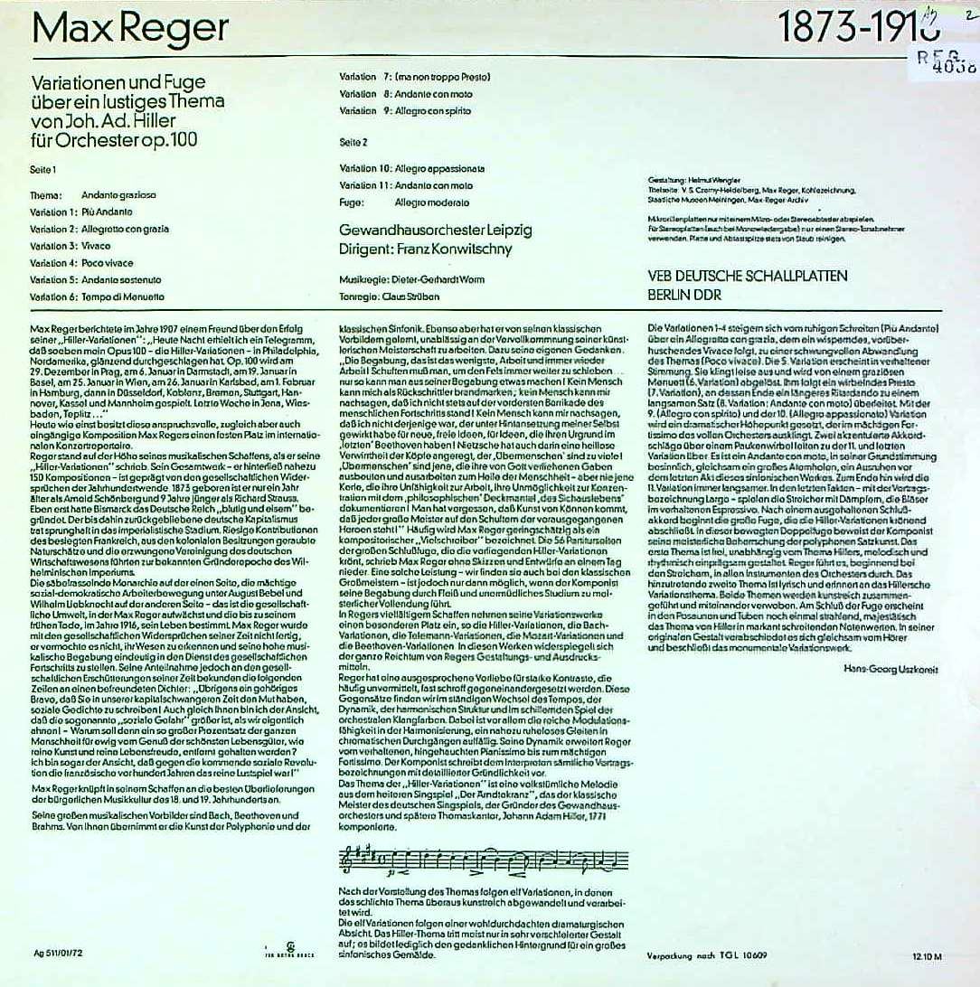 商品コード:REG-4058n[東独ETERNA] F.コンヴィチュニー/ レーガー:ヒラーの主題による変奏曲Op.100