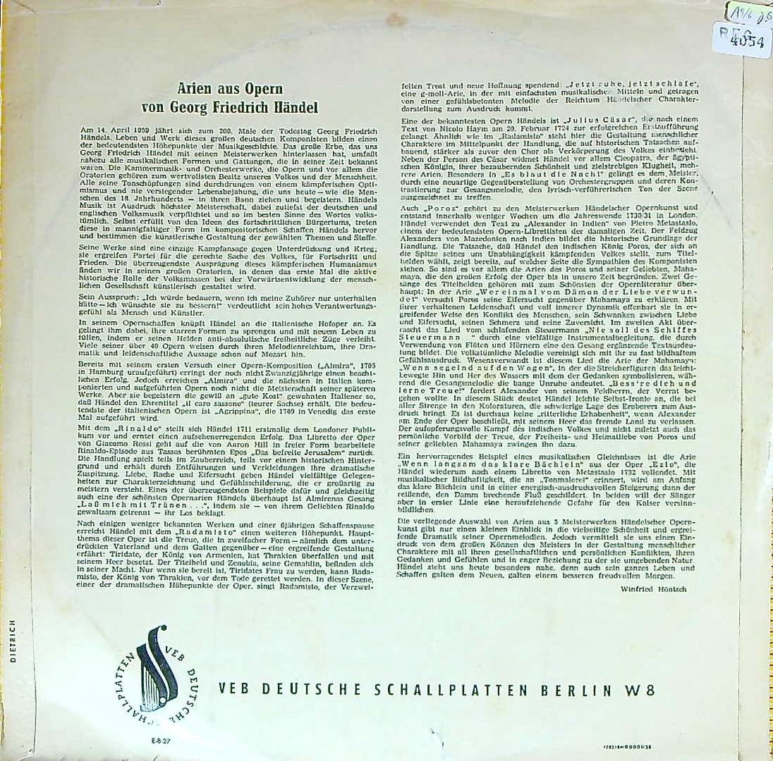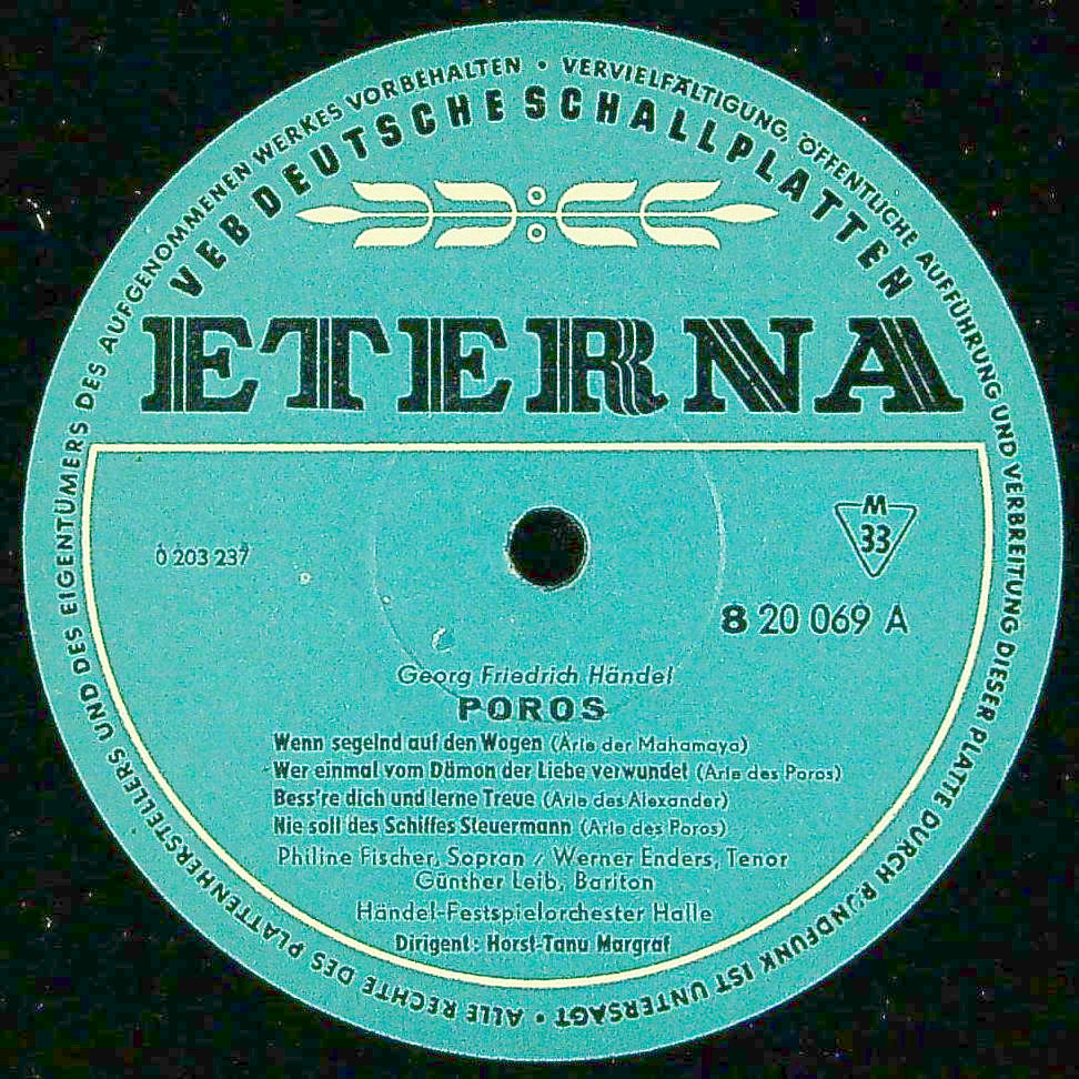 商品コード:REG-4054n[東独ETERNA] P.フィッシャー(s) G.ライプ(br)/ 「ヘンデル:歌劇アリア集」インド王ポーロ~4曲, ラダミスト~1曲 他