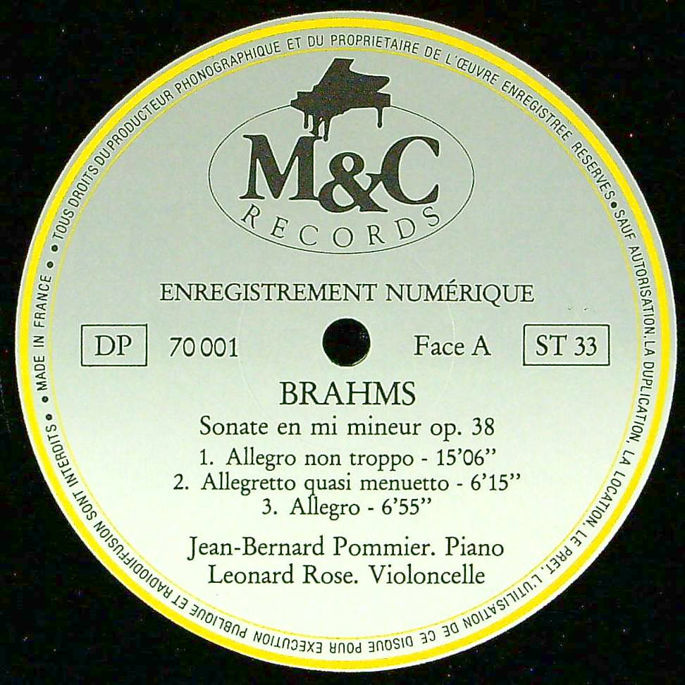 商品コード:1367-051[M&C] L.ローズ(vc) J.B.ポミエ(pf) / ブラームス:Vcソナタ1番Op.38 , Vcソナタ2番Op.99