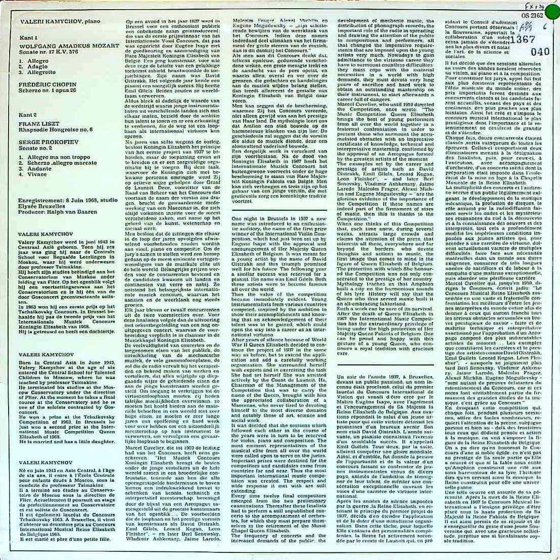 商品コード:1367-040[CNR] V.カミショフ(pf) / 1968年エリザベート王妃コンクール/モーツァルト, ショパン, プロコフィエフ, リスト