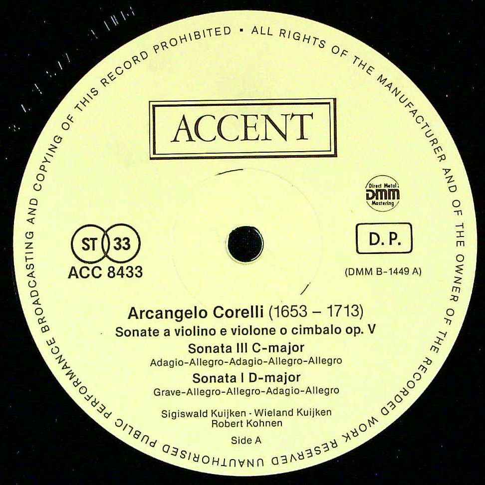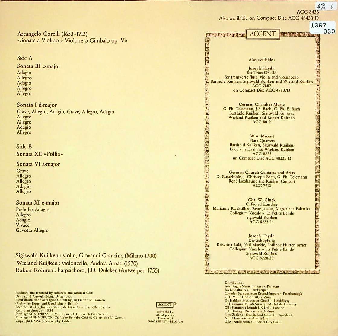 商品コード:1367-039[ACCENT] クイケン兄弟 他/ コレッリ:VnソナタOp.5-1, 3, 6, 11, 12「ラ・フォリア」