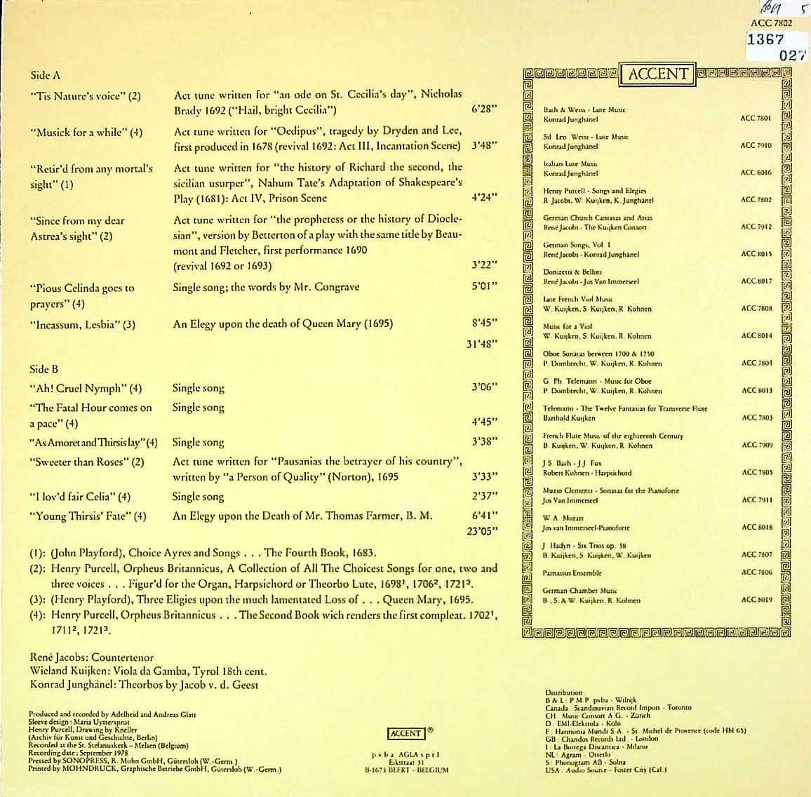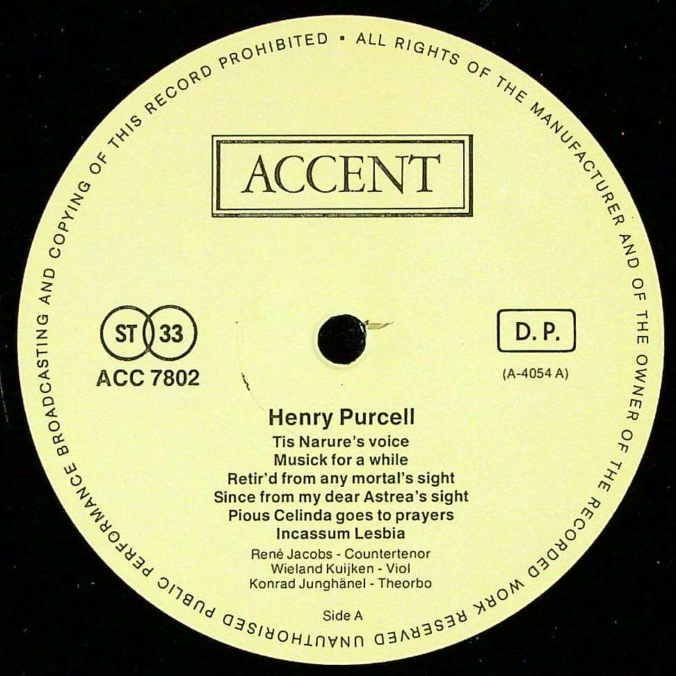商品コード:1367-027[ACCENT] R.ヤーコプス(ct)/ パーセル:歌曲集(12曲)