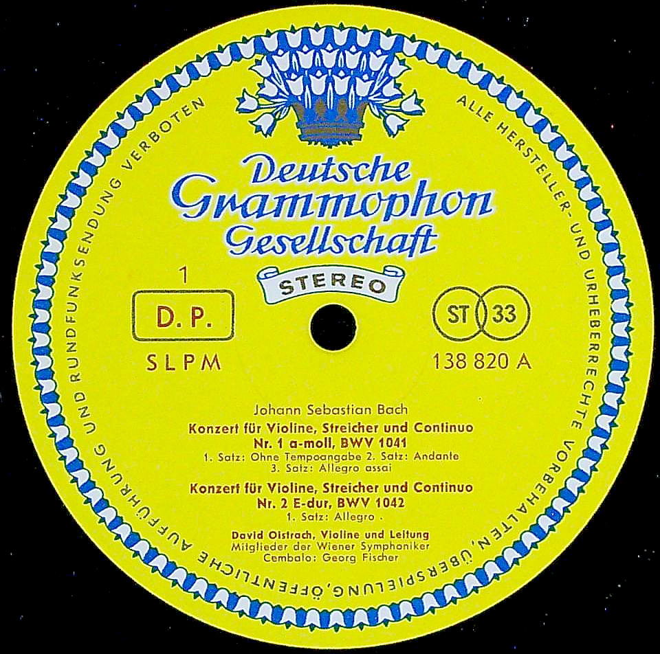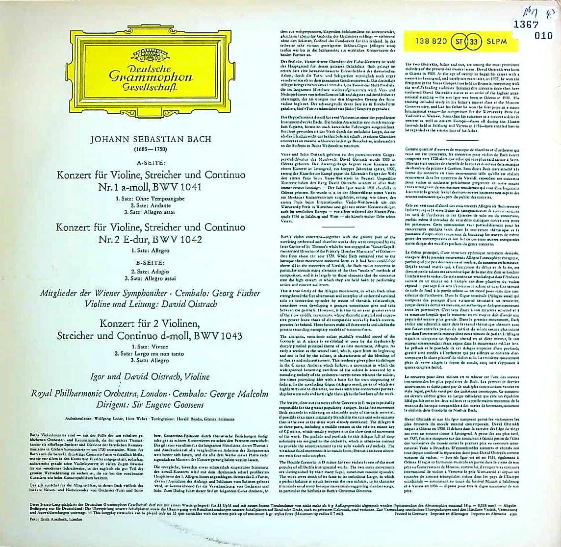 商品コード:1367-010[DGG] D&I.オイストラフ(vn)/ バッハ:Vn協奏曲1番B.1041, Vn協奏曲2番B.1042, 2Vn協奏曲B.1043