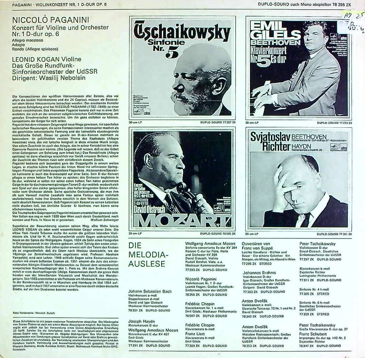 商品コード:REG-4076n[独AUSLESE] L.コーガン(vn)/ パガニーニ:Vn協奏曲1番