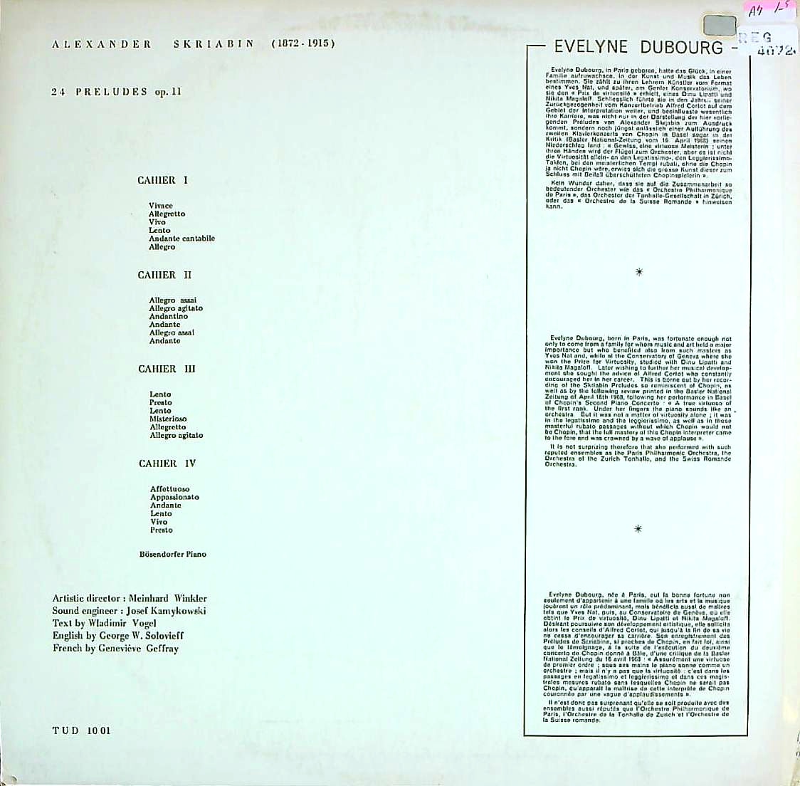 商品コード:REG-4072t[スイスTUDOR] E.デュブール(pf) / スクリャービン:24の前奏曲