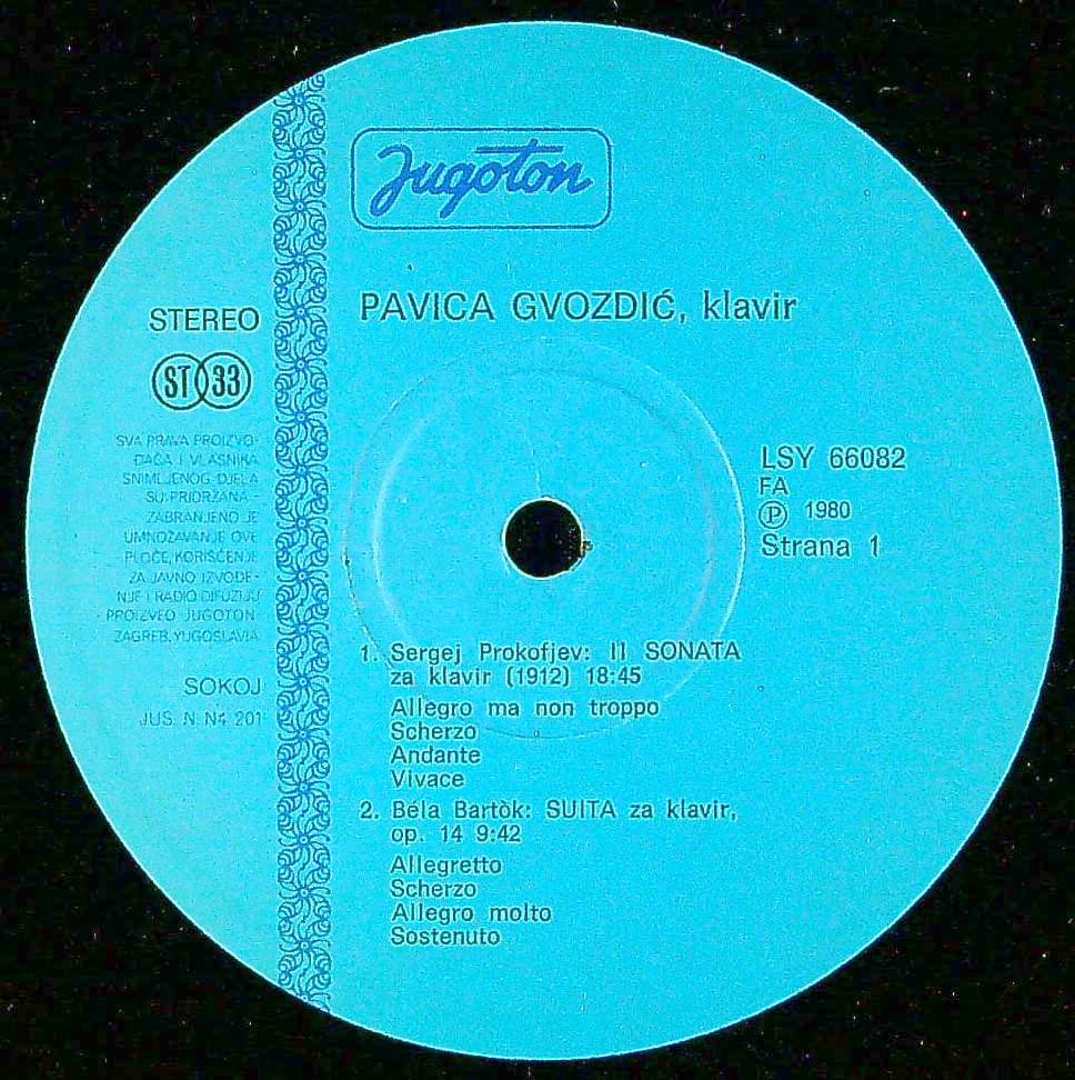 商品コード:REG-4071t[ユーゴスラビアYUGOTON] P.グヴォズディッチ(pf) / プロコフィエフ:Pfソナタ2番, バルトーク, ホルヴァト, ルトスワフスキ:, ケンプ