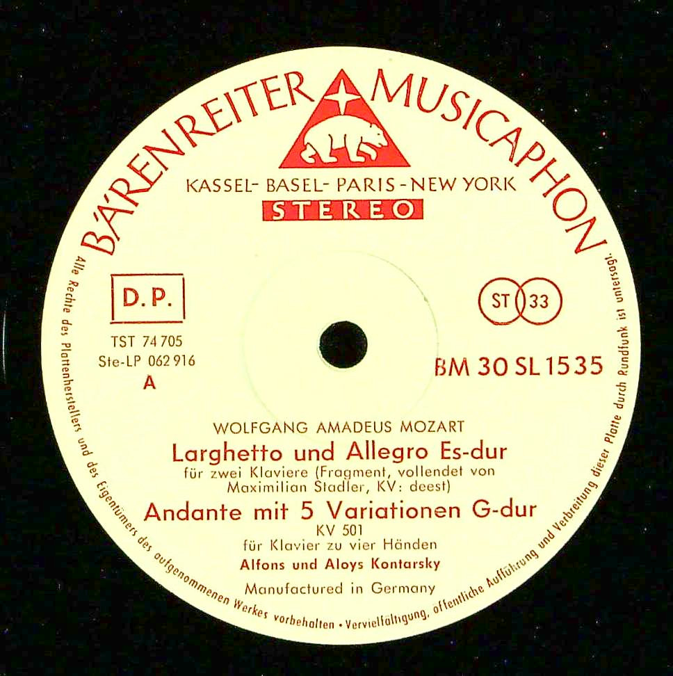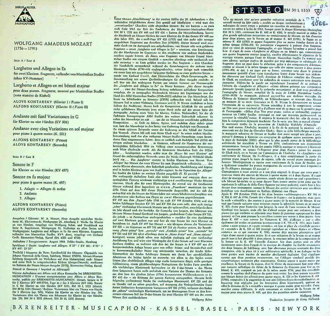 トピックス:薄黄/赤内溝GG, コート, ジャケ裏面に解説, 2台/4手曲集バラ2枚で完結(BM30SL 1521/1535), ベーレンライター・ムジカフォン, '63-'64年録音, オリジナル
