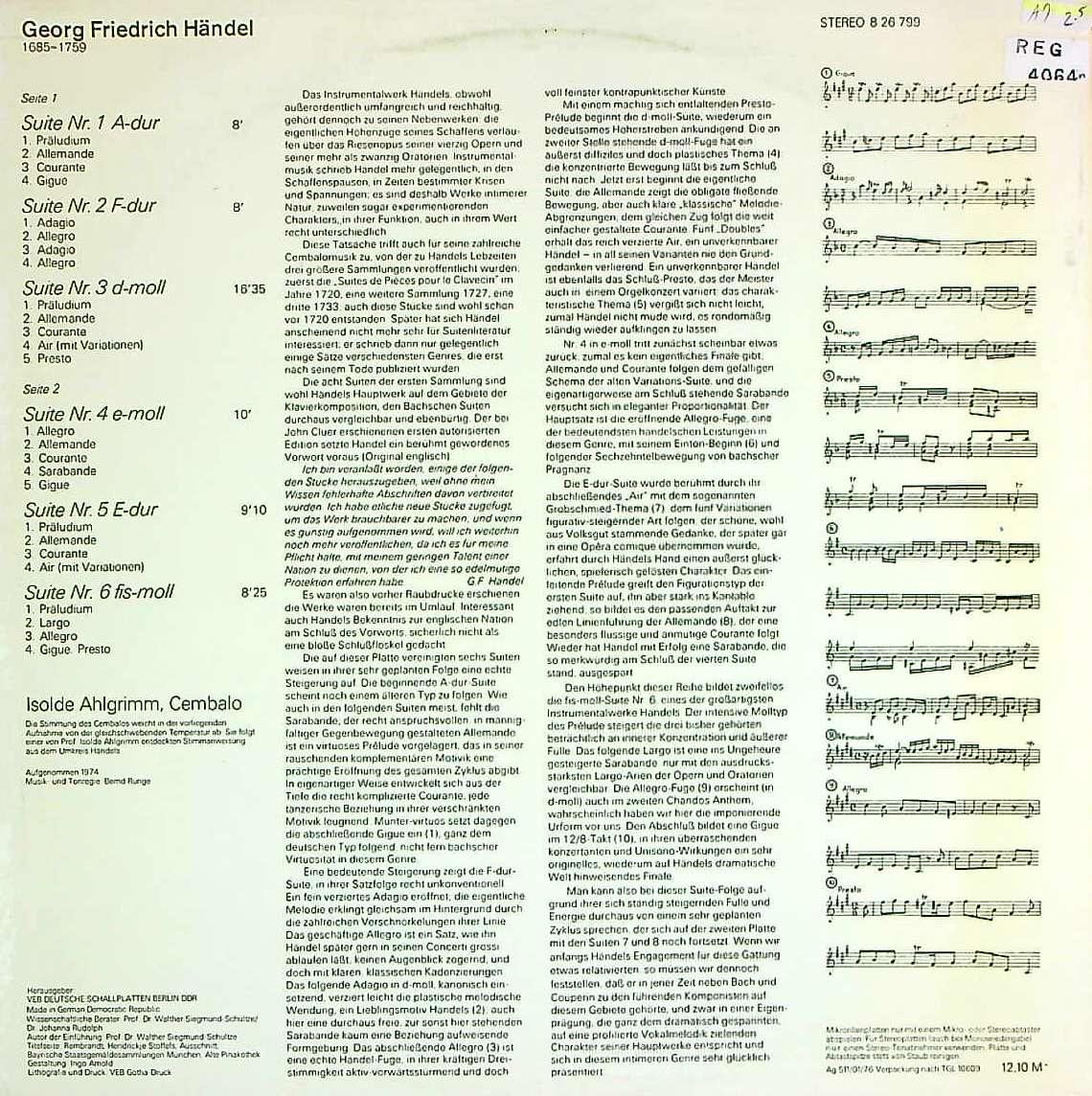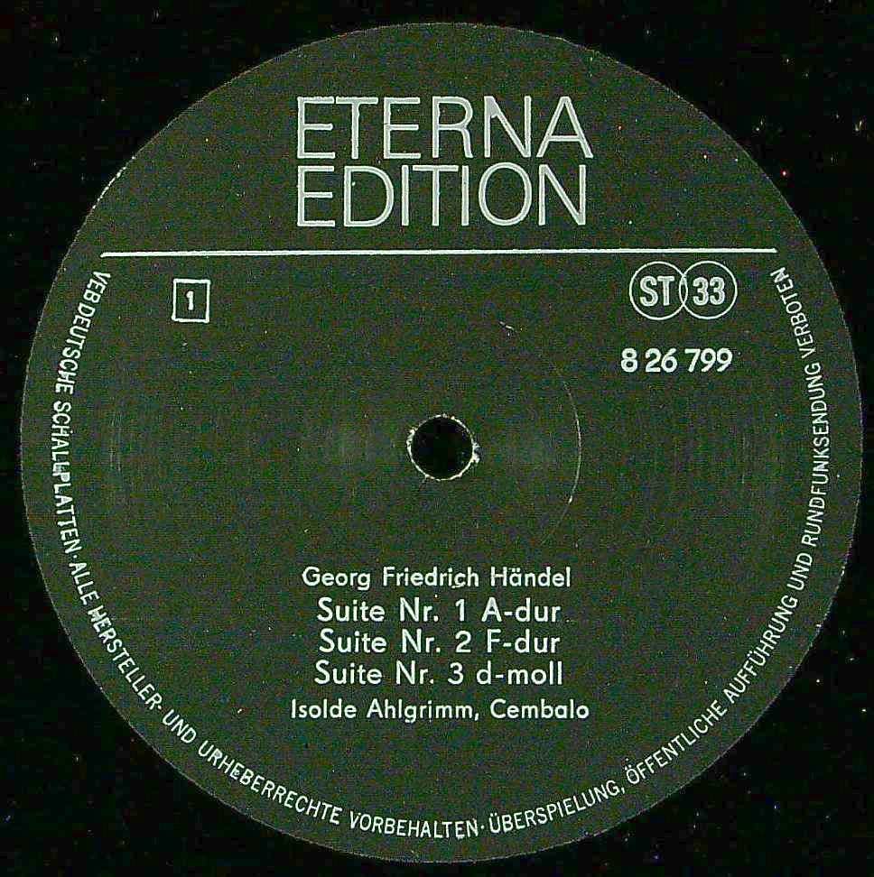 商品コード:REG-4064n[東独ETERNA] I.アールグリム(cemb) / ヘンデル:Cemb組曲1~6番