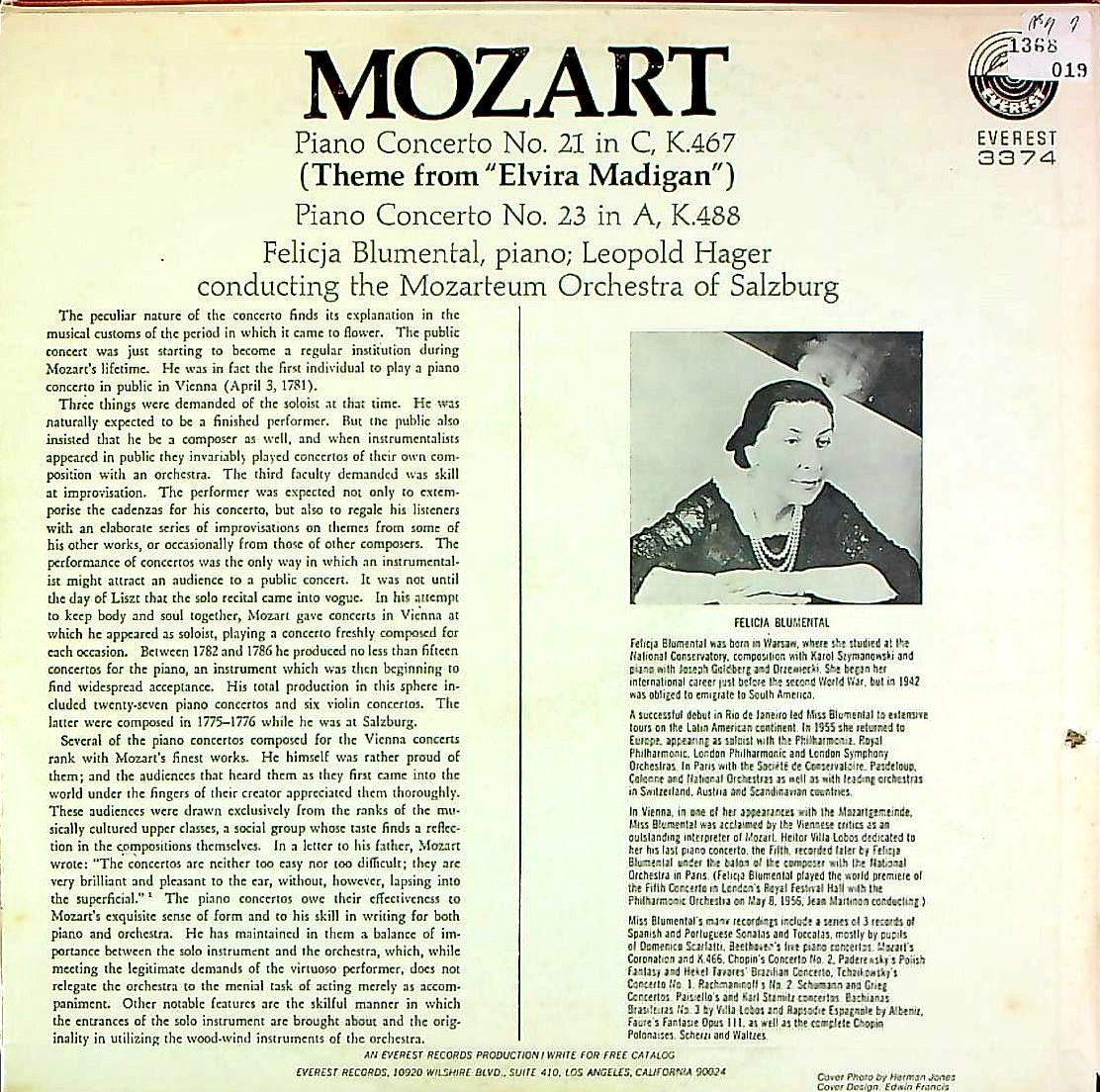商品コード:1368-019[EVEREST] F.ブルメンタール(pf)/ モーツァルト:Pf協奏曲21番K.467, Pf協奏曲23番K.488