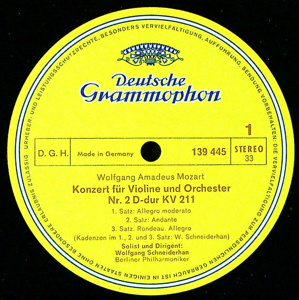 商品コード:1368-014pb[DGG] W.シュナイダーハン/ モーツァルト:Vn協奏曲全集-1/Vn協奏曲2番K.211, Vn協奏曲3番K.216