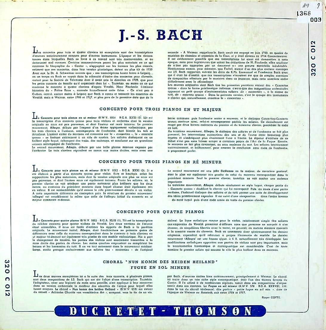 商品コード:1368-009[Ducretet Thomson] A.ゴールドシュミット/ バッハ:コラールB.659, 小フーガB.578, 3Pf協奏曲1番&2番B.1063&1064, 4Pf協奏曲B.1065