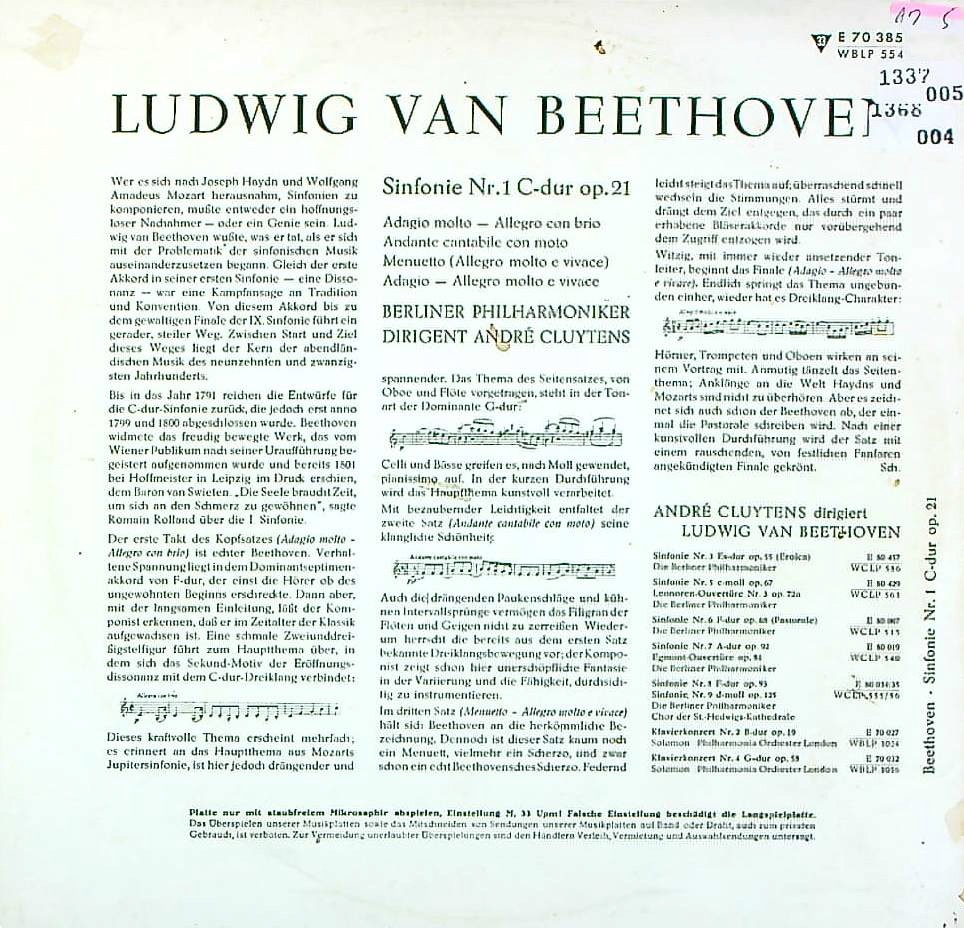 商品コード:1368-004t[ELECTROLA] A.クリュイタンス/ ベートーヴェン:交響曲1番
