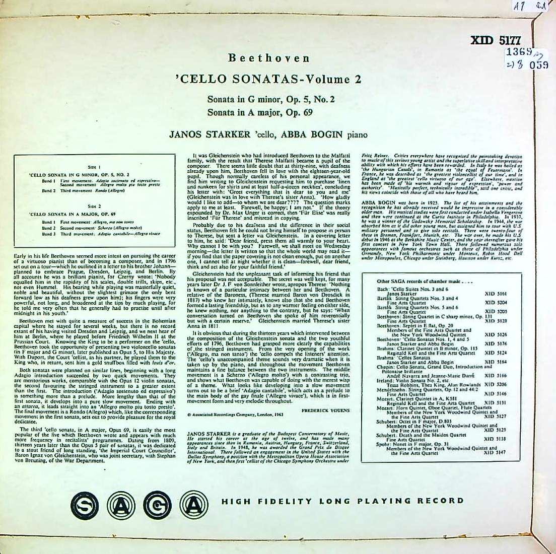 商品コード:1369-059[SAGA] J.シュタルケル(vc)/ ベートーヴェン:Vcソナタ全集(5曲)