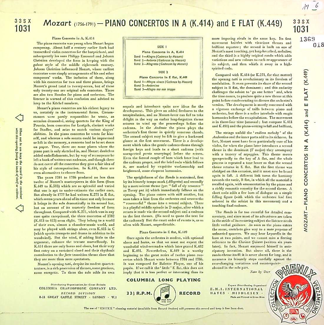 商品コード:1369-018[COLUMBIA] D.マシューズ(pf)/ モーツァルト:Pf協奏曲12番K.414, 14番K.449