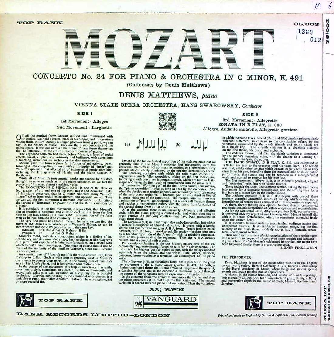 商品コード:1369-012[TOP RANK] D.マシューズ(pf)/ モーツァルト:Pf協奏曲24番K.491, Pfソナタ13番K.333