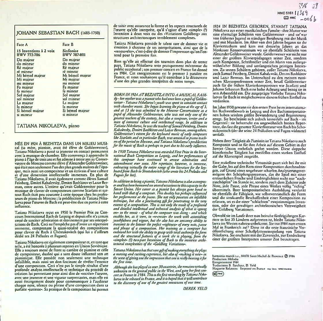 商品コード:1369-006b[HM] T.ニコラーエワ(pf) / バッハ:インヴェンションとシンフォニアB.772~801