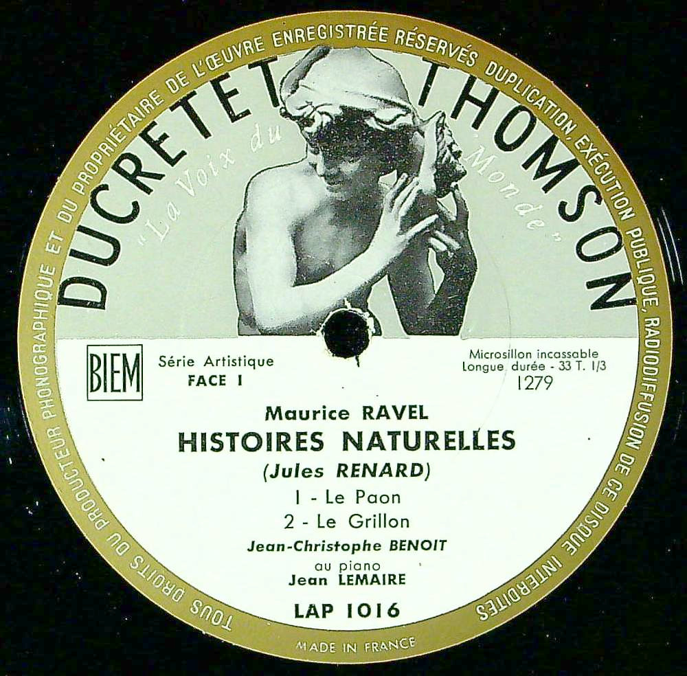 商品コード:1369-002[Ducretet Thomson] J.C.ブノワ(br) J.ルメール(pf) / ラヴェル:歌曲集「博物誌」(全5曲)