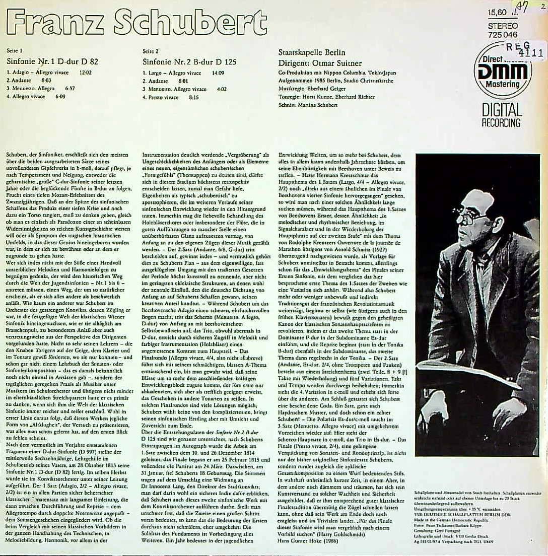商品コード:REG-4111n[東独ETERNA] O.スウィトナー/ シューベルト:交響曲1番D.82, 2番D.125