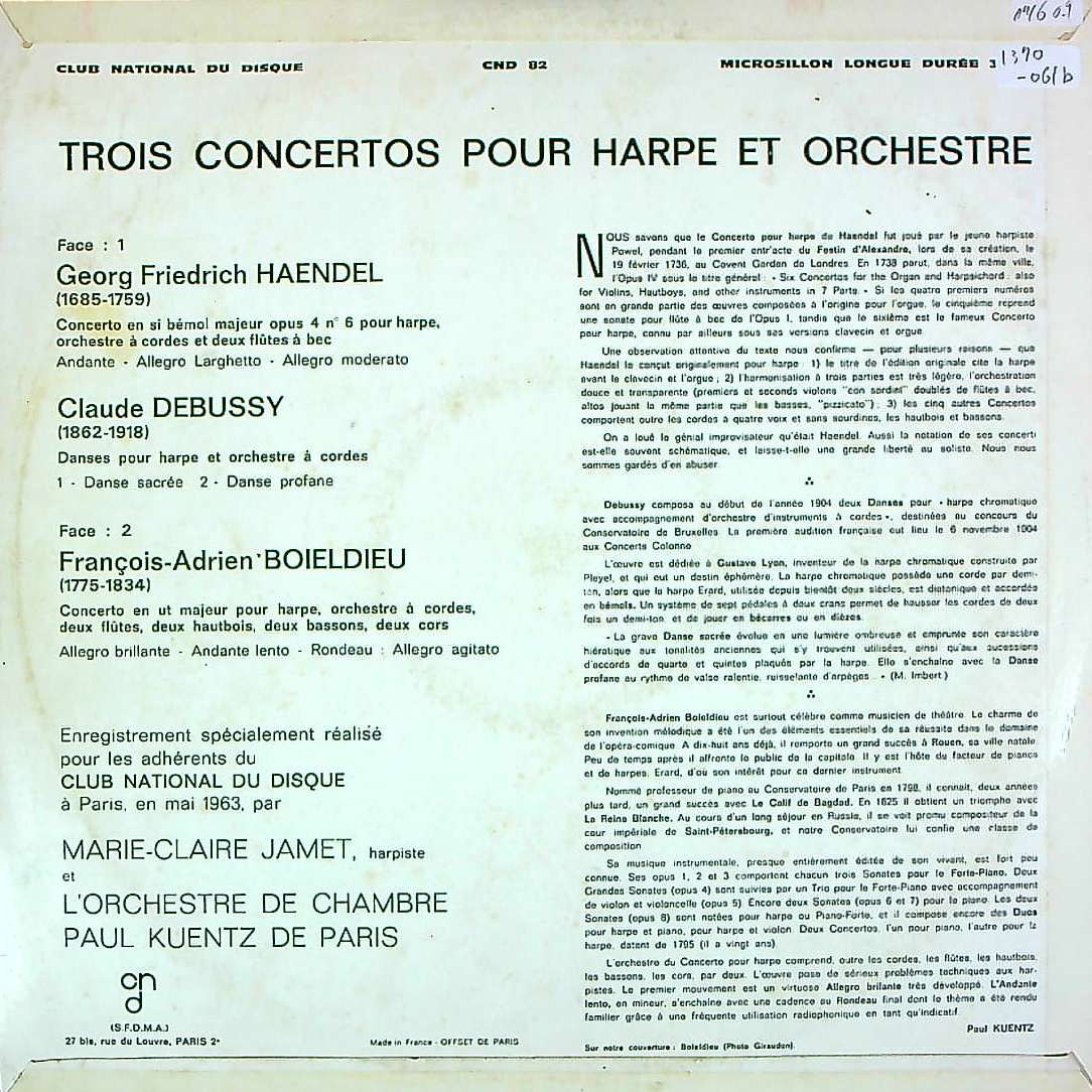 商品コード:1370-061b[CLUB NATIONAL] M.C.ジャメ(hp) P.キュンツ/ Hp協奏曲集/ヘンデル, ドビュッシー, ボイエルデュー